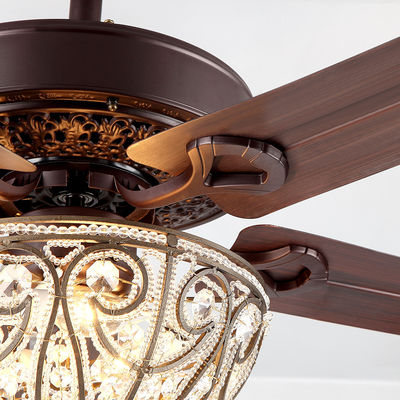 | Het Materiaal van het lamplichaam: | Kristal | Productnaam: | Decoratief Crystal Ceiling Fans With Light 5 de Kroonluchter van Ijzerbladen |